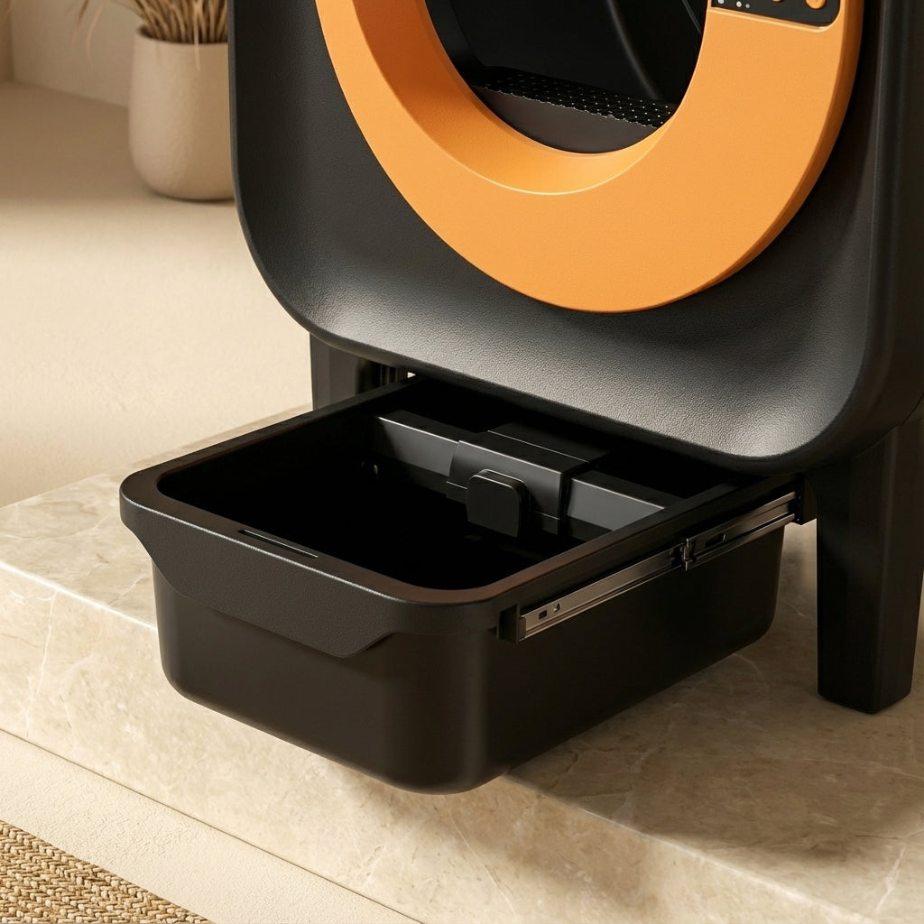 Avec jusqu'à 15 jours d'autonomie pour un chat, cette litière automatique vous libère des contraintes du ramassage manuel. Après chaque passage de votre compagnon, le système de tamisage intelligent sépare les agglomérats et les dirige vers un tiroir hermétique de 9 litres. Vous ne faites que vider ce réservoir quand l'application vous le signale. Résultat : des heures récupérées chaque semaine et une litière toujours fraîche pour votre chat.