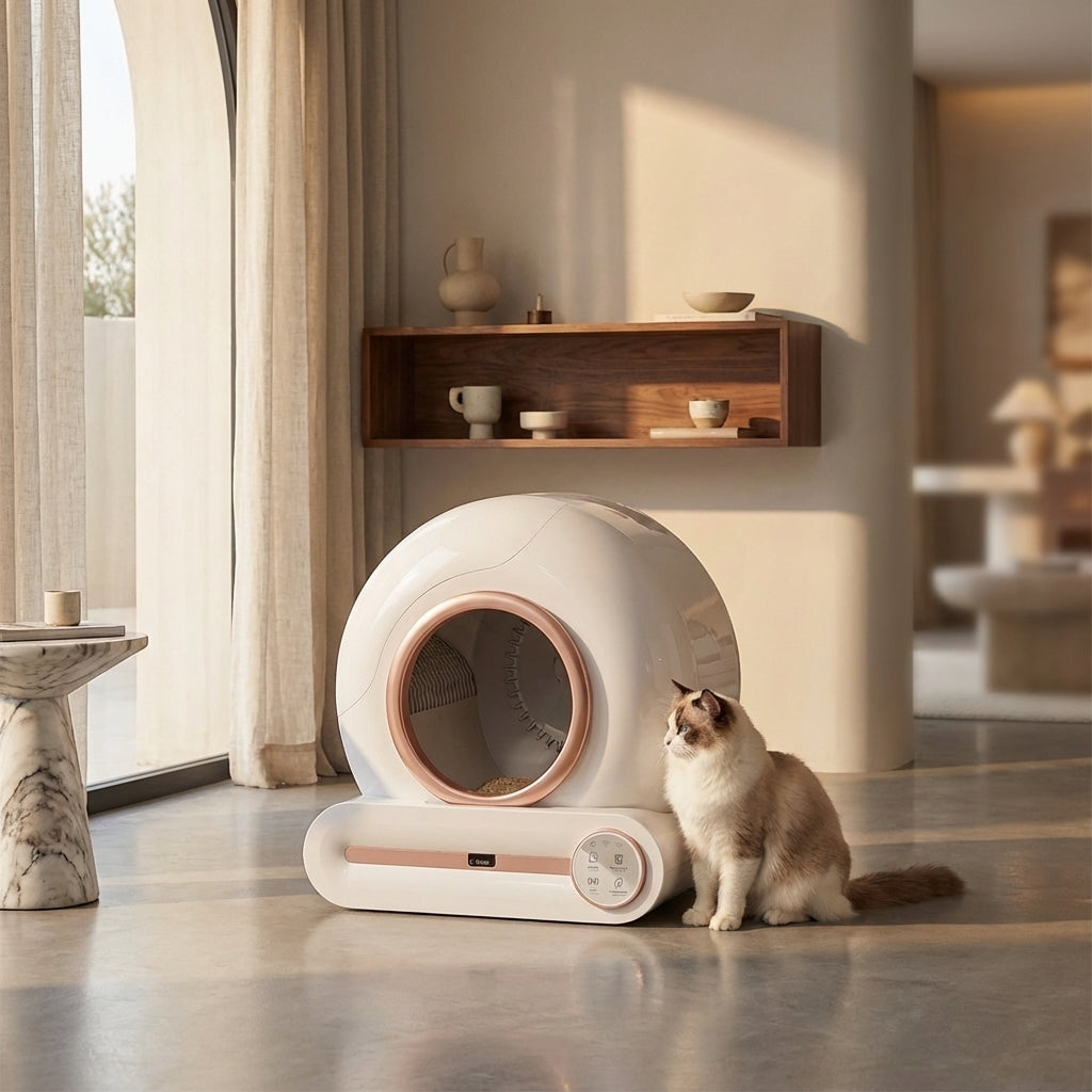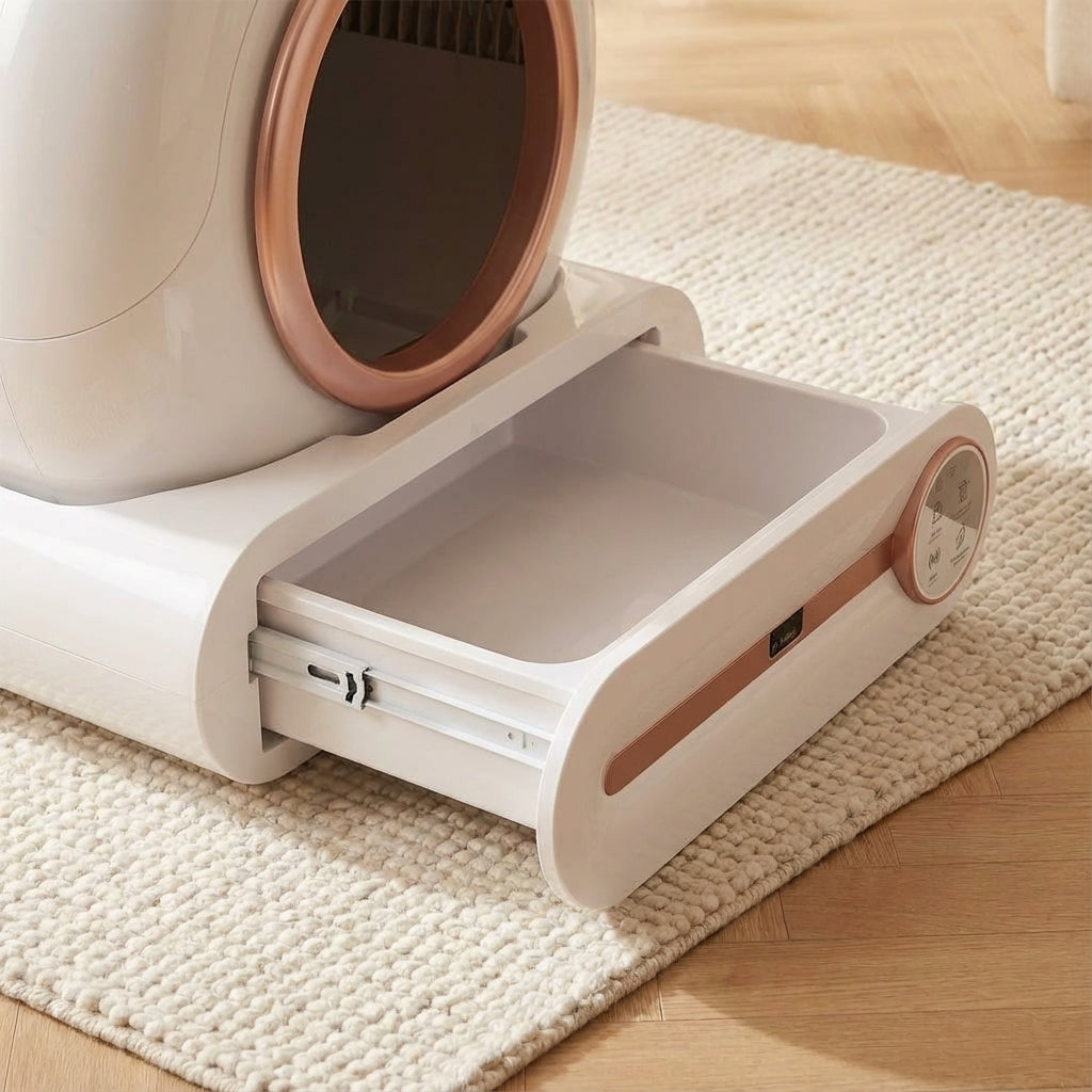La Litière Automatique Grand Tiroir : Double désodorisation Ionique + Ag+ et silence absolu