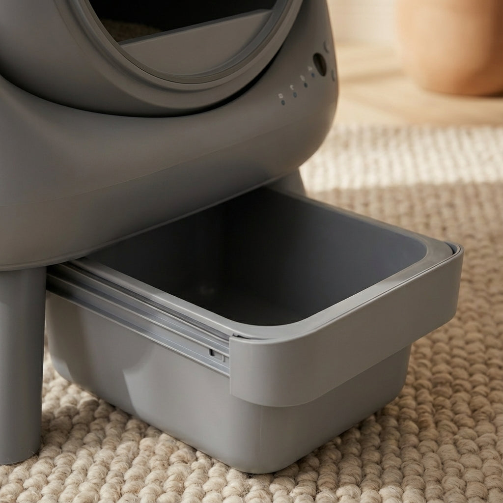 - Aucun consommable propriétaireUtilisez vos sacs poubelle standards et la litière de votre choix. Zéro coût caché, zéro dépendance.