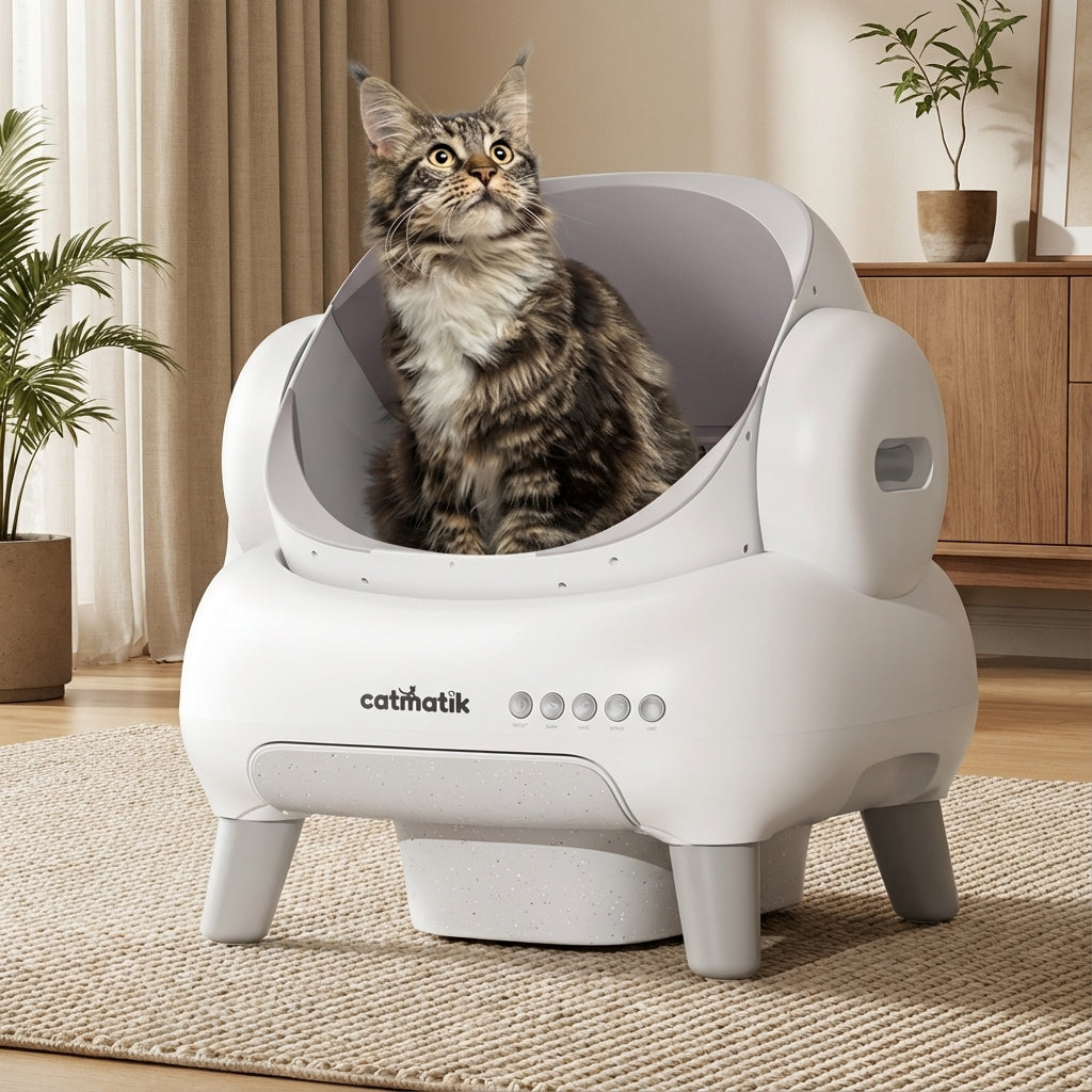 Découvrez une maison de toilette autonettoyante qui reproduit le confort d'un bac classique avec la puissance de l'automatisation. Ce robot litière au design semi-ouvert offre l'entrée la plus large du marché — 43 cm — et un espace vertical illimité où même les Maine Coons et British Shorthairs se retournent librement. Équipée de capteurs ToF + PIR de dernière génération, d'une grille inox anti-corrosion et d'un liner remplaçable en 30 secondes, cette litière automatique est la solution idéale pour les grands chats et les félins qui refusent les espaces fermés.