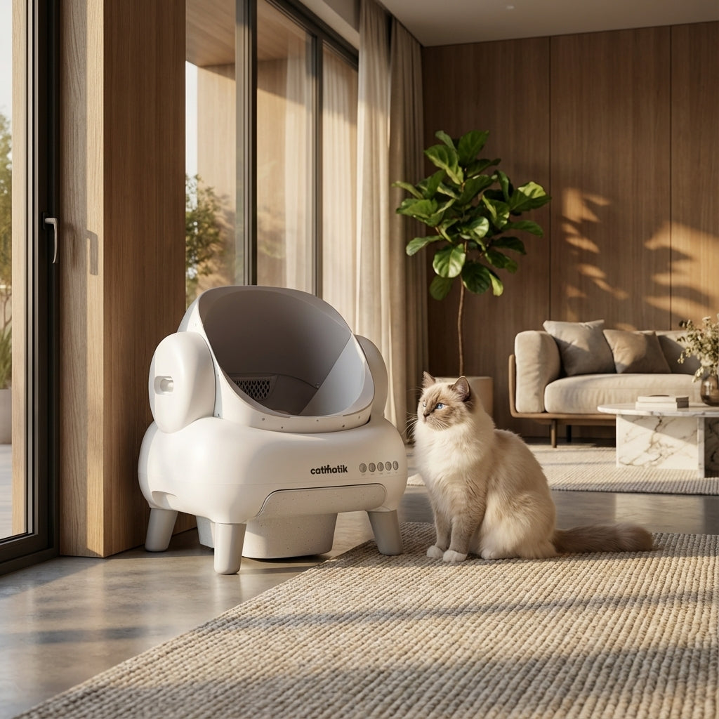La Litière Automatique Semi-Ouverte XXL : Entrée géante de 43 cm et espace vertical illimité